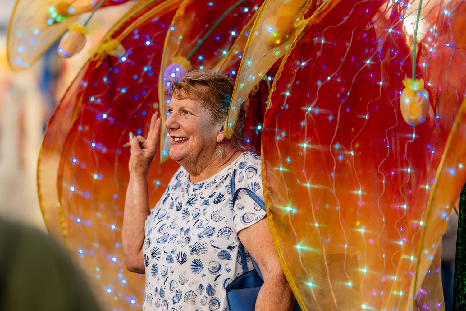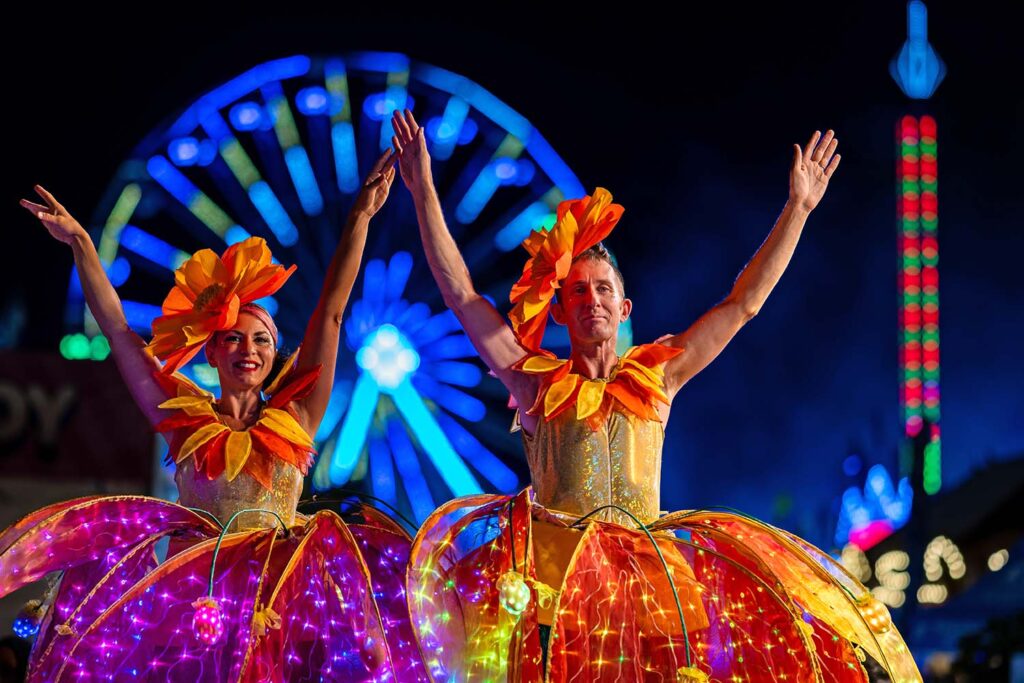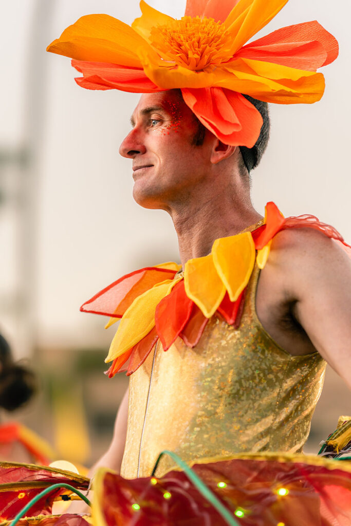 On stilts, the flowers become majestic walking sculptures, towering high above the crowd and visible from across the venue. As ground roving characters, they move intimately through the space, allowing guests to admire the intricate glowing details up close. These glowing botanical beings transform ordinary spaces into enchanted gardens and futuristic fairylands.